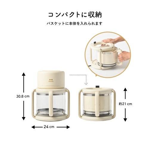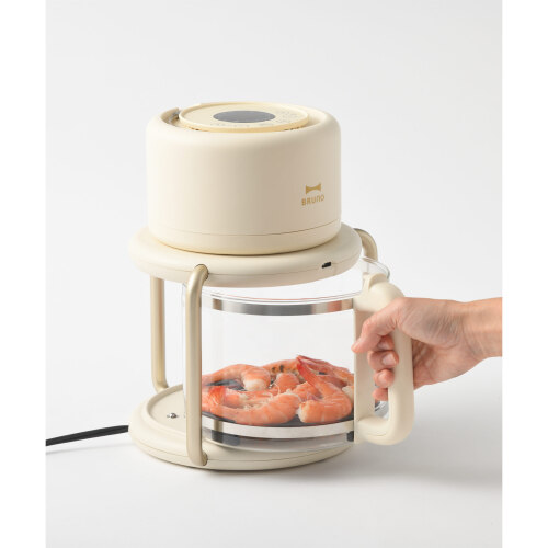 バスケットは調理しながら、中身が見えるガラス製。見ていて愉しく、おいしいタイミングを見逃しません。