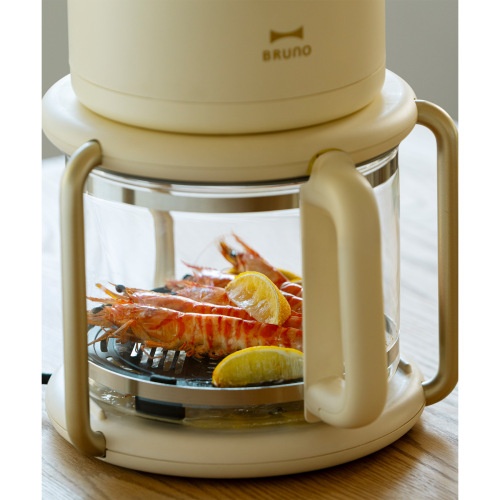揚げ物だけじゃない!本格的なグリル調理からお惣菜の温め直しまで、便利に使えるエアフライヤーをBRUNOオリジナルの巾着に収めた、ギフトにぴったりのセットです。