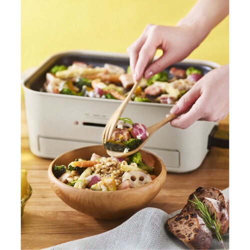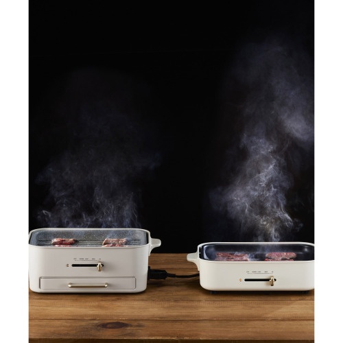 減煙プレートと平面、たこ焼きの3種の付属プレートのほか、コンパクトホットプレートのオプションアイテムもそのまま使えるため、幅広いお料理で活躍します。つくる人も食べる人も、みんなが“おいしい”ホットプレートです。
