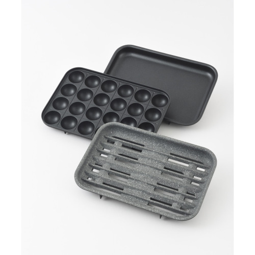 平面プレート、たこ焼きプレート、減煙グリルプレートの3種のプレート付きです。