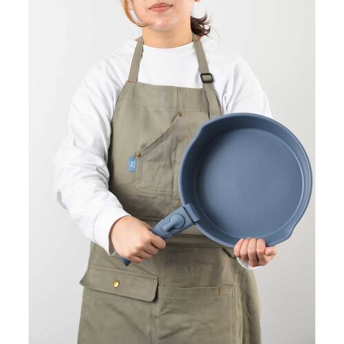 取っ手部分が取り外せるフライパンシリーズが登場しました。重ねてすっきり収納でき、冷蔵庫内での保存時も場所を取らずに便利。洗練されたニュアンスカラーとマットな質感で、左右に注ぎ口のある独特な形状がアクセントに。食卓へ出しても映えるお皿のようなデザインが魅力です。出来立てあつあつをそのままサーブでき、後片付けもラクラク。IH、ガス、オーブンに対応し、レシピの幅も広がります。実用性とデザイン性を兼ね備えたシリーズで、料理をもっと愉しく、毎日にゆとりをもたらします。フライパン2種(26cm/20cm)、鍋(20cm)、フタ2種、ハンドルのセットです。※オーブン使用は180度未満