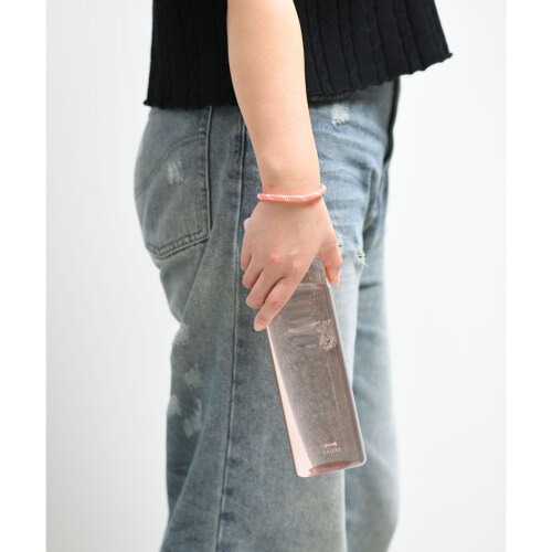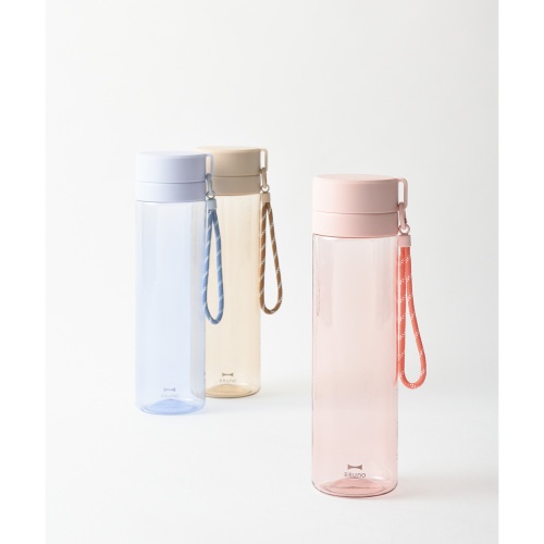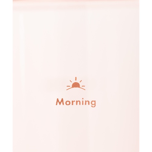朝のやわらかな光をイメージした、ニュアンスカラーのプラスチックボトル(760ml)。容量に合わせた目盛りには、思わず笑顔になるメッセージを添えました。本体カラーと調和する同系色の紐が、デザインのアクセントに。毎日の水分補給を、心地よい習慣にしてくれます。