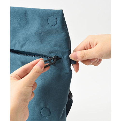 ファスナー部分は無縫製で高周波の圧着をすることにより、縫い目をなくし雨水の侵入を防ぐ仕様に。