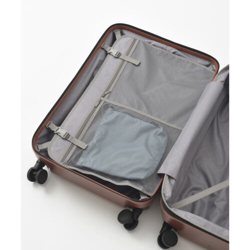 スマートかつシンプルなデザインながら、サイドファスナーを開けることで収納容量を+6L増やせる拡張式キャリーケース。1週間程度の旅行におすすめです。揺れる車内や坂道での不意な走行を防ぐストッパーや諸外国の旅で施錠したまま航空会社に預けることができるTSロックシステムを搭載。旅を楽しく快適にしてくれます。