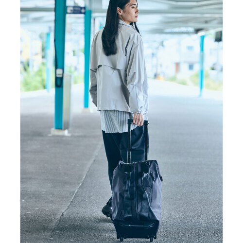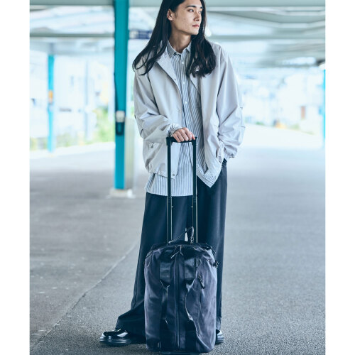 荷物量やシーンに合わせて使い分けできる3WAYボストンキャリー。キャリーバーを伸ばしてキャリーとして、キャリーバーを収納して手持ちのボストンバッグとして、縦にも横にも取り付け可能な付属のショルダーストラップでショルダーバッグとしても活躍します。縦置きでも横置きでも開閉しやすいY字ファスナーで大きな荷物も収納楽々。アクセスが簡単な外ポケットには、頻繁に取り出したいものを入れておくのに便利。簡易防犯としてすぐにカットできないロープでのカラビナロック付きで移動時も安心。3泊程度の旅行に対応するサイズ感です。